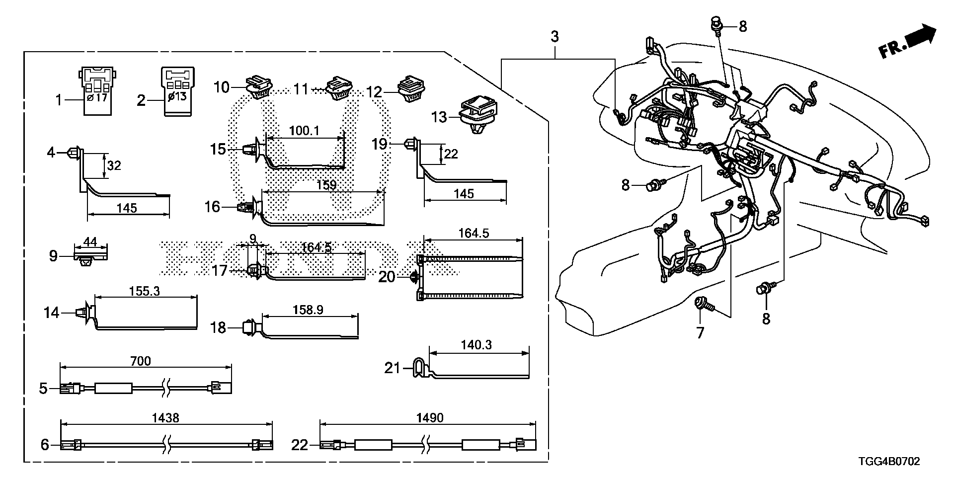 Genuine OEM BAND, HARNESS OFFSET (20) (145MM) (DARK BLUE) for your Honda Civic FK8.