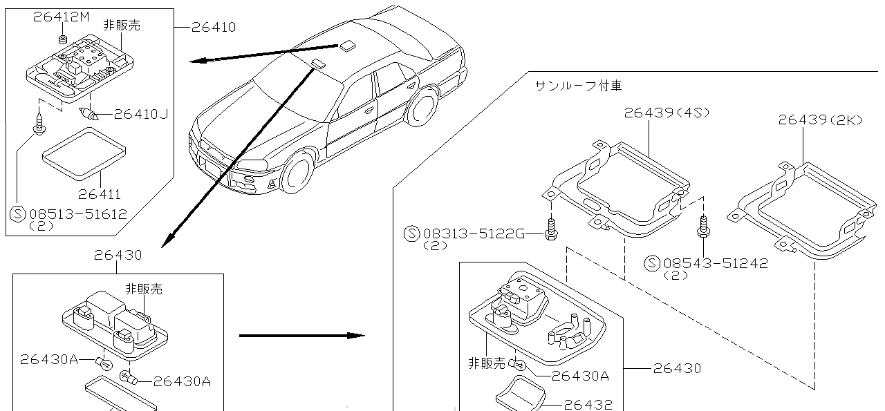 Nissan SKYLINE R34 ROOM LAMP ASSEMBLY (26410-1L003)