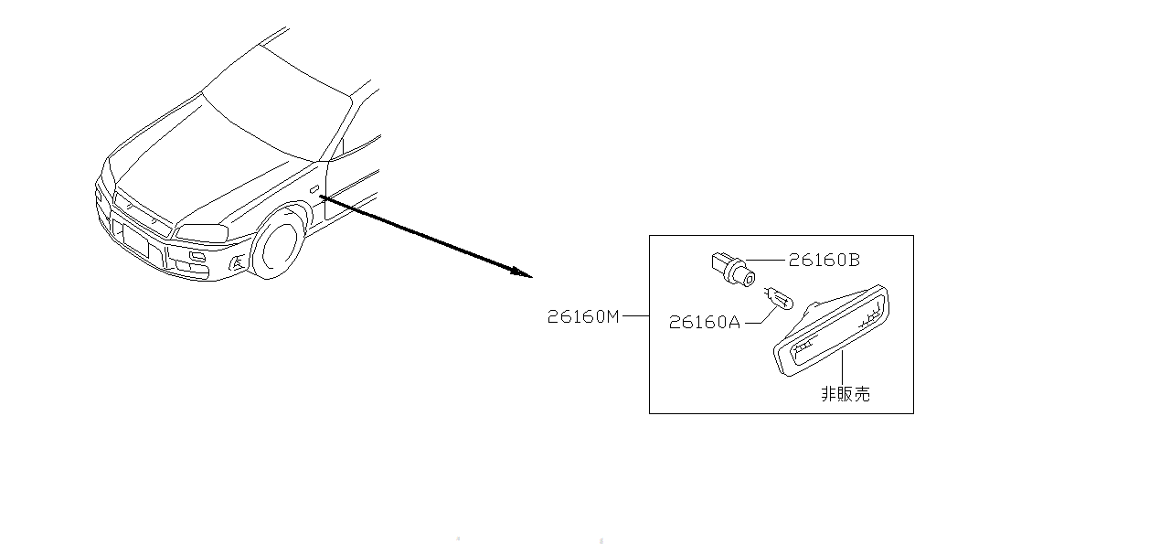 Genuine OEM SOCKET ASSEMBLY,SIDE TURN SIGNALLAMP for your Nissan SKYLINE R34.